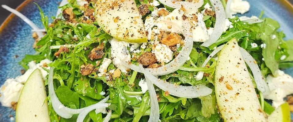 Arugula, blackberries, pickled red onion, gorgonzola, shaved speck, pistachio, blood orange vinaigrette