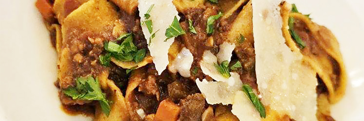 Our traditional homemade meat sauce tossed with fresh tagliatelle pasta